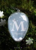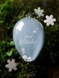Flot påskeæg med navn og forbogstav på forsiden, tekst på bagsiden og søde påskeharer! Et drys papirsblomster pynter inden i påskeægget. Sød og personlig påskegave til en du har kær.