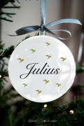 Personlig julekugle 6 cm svaler med navn på forside og tekst/ årstal på bagsidenPersonlig julekugle 6 cm svaler med navn på forside og tekst/ årstal på bagsiden
